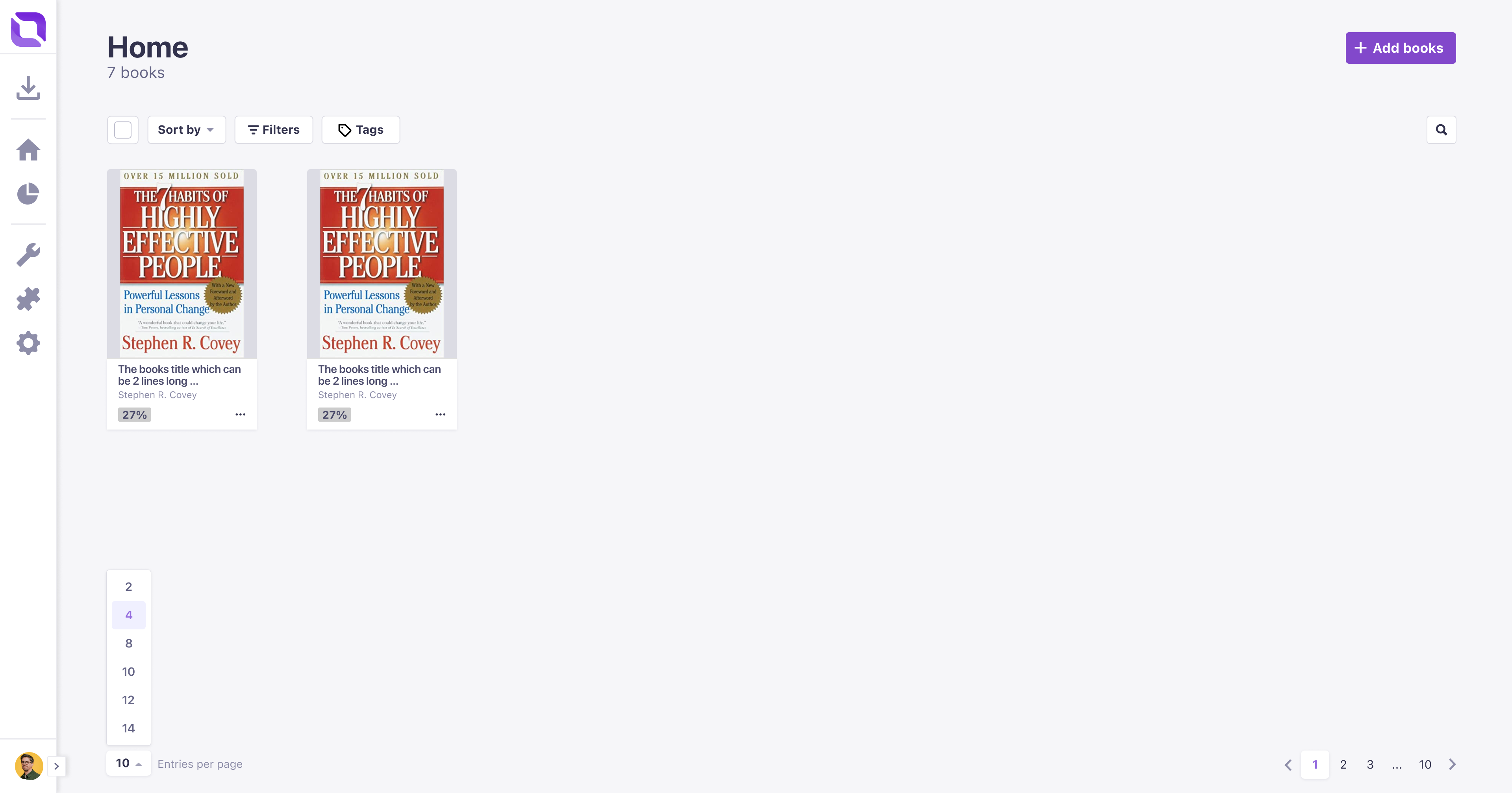 Resources (books, PDFs, documents) live in the main Library.